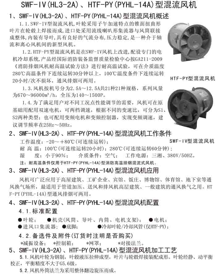 三、SWF-IV(HL3-2A)、HTF-PY(PYHL-14A)系列節能混流風機
